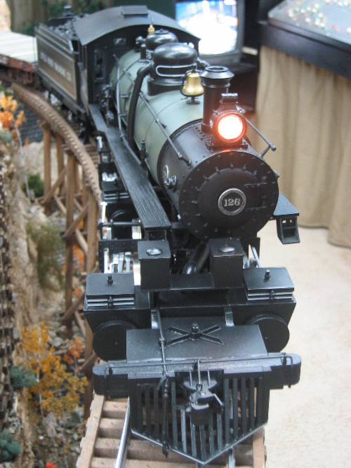 This “G” scale engine is built to 22.5 scale specs, and runs on Gauge 3 track.